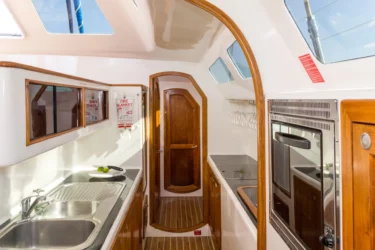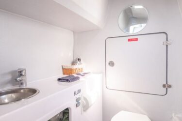 The Galley adjacent to both saloon and cockpit offer ample refrigeration and preparation space. Catering is available upon request, or you can BYO food, which the crew will cook on the BBQ while you and your guests sit back and enjoy the day.