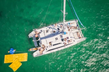 Ocean Life is packed with features to keep everyone entertained. For those who love to dance, a dedicated dance floor and state-of-the-art stereo system ensure the music flows all day long. There’s also plenty of space to relax, with beanbags for lounging and sunroofs that open to let in the breeze. If you’re after a little more adventure, hop onto the trampoline, or take one of the three paddleboards for a spin on the water. The catamaran is also equipped with a BBQ, fridges, and eskies, so you can enjoy a meal or drinks while soaking in the views.
