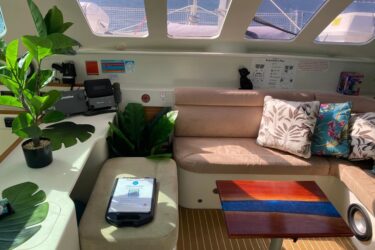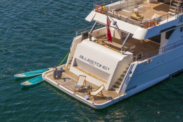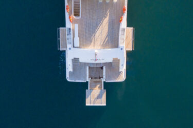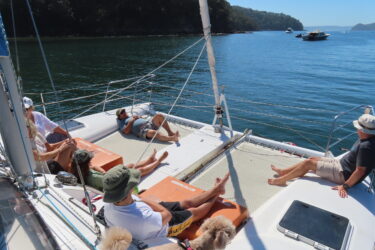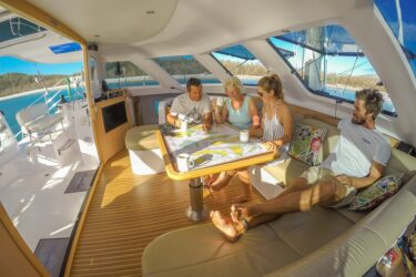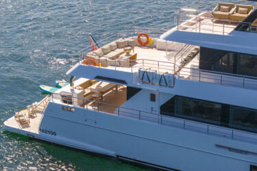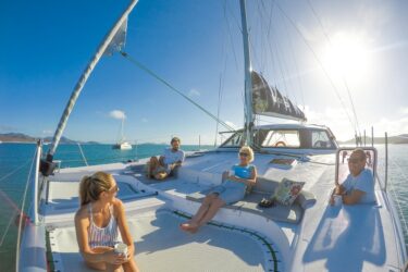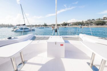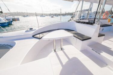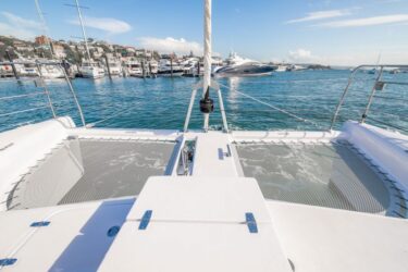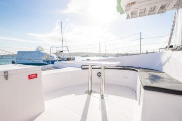 system, while soaking up the stunning views from the catamaran’s impressive bow or taking a