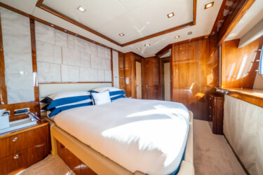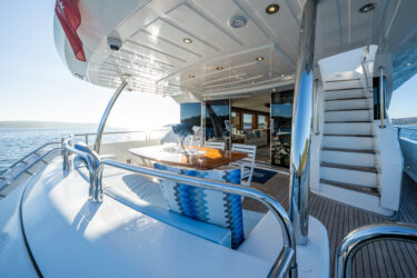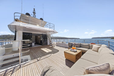 The aft deck boasts a large alfresco dining area and lounge with staircases leading to an enticing swim platform. The open plan galley allows guests to enjoy the private chef’s expertise while relaxing on the large leather lounge. Four luxurious bedrooms, Three full bathrooms and a huge bow daybed providing 360 degree views of Sydney and it’s Harbour.