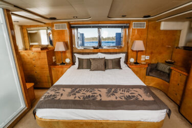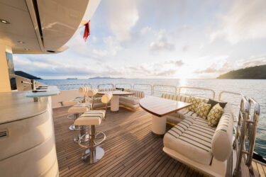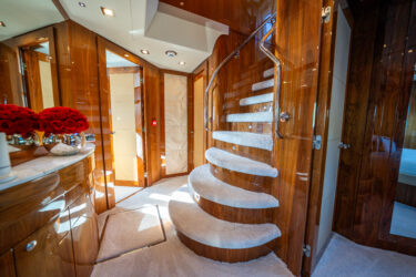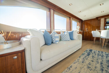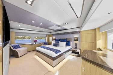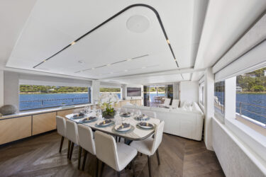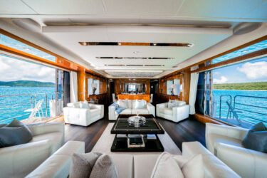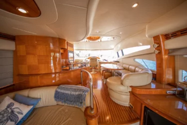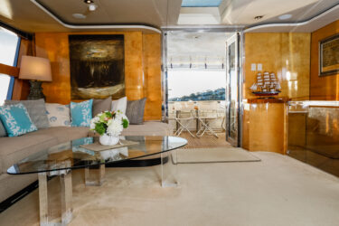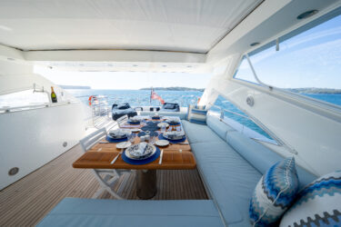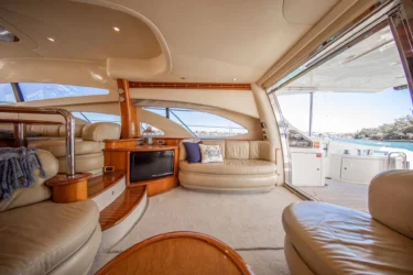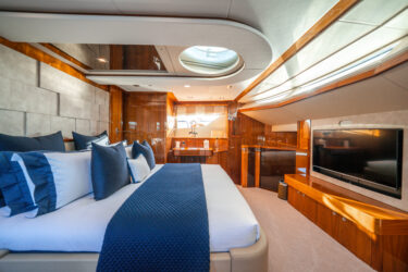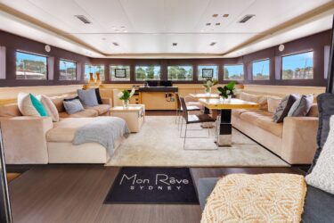 With its expansive interior and alfresco outdoor areas, Mon Rêve offers the space and sophistication usually reserved for much larger yachts. The open-plan layout features plush lounge seating, a generous flybridge with a retractable sunroof, and multiple entertaining areas that seamlessly connect indoor and outdoor living. From casual cocktail parties to formal catered events, the yacht’s versatile spaces can be tailored to suit your occasion.