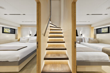 This cutting-edge catamaran has been designed to provide both stability and enormous amounts of volume, equivalent to a vessel almost twice the length.