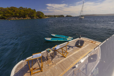 Sydney also offers plenty secluded beaches, perfect for a swim or plunge on Felix’s Lily Pad and ample sunbathing space on the bow or the comfortable swim platform which is equipped with a swim ladder. Paddleboards are also available for a small fee.