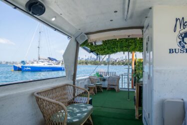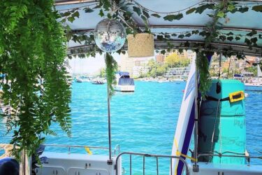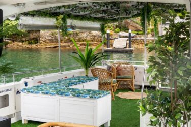 The boat features a powerful PA system with party speakers and a subwoofer, so your favorite tunes will keep the energy flowing all day long. With funky styling, fairy lights, and tropical décor, the atmosphere is effortlessly vibrant and welcoming.