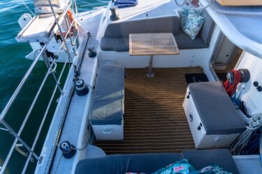 The saloon and cockpit combined boast seating for 28 guests, with an optional sunshade in the aft seating area allowing for sun, or shade, as the client requests. A broad foredeck provides a wonderful outdoor socialising area and additional sunbathing space.