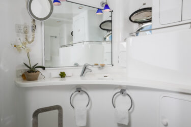 Below deck, Empress features a luxurious four-cabin layout, with each cabin boasting private ensuites, rainfall showers, and integrated audio-visual systems. The master cabin offers the height of indulgence, with BOSE surround sound, a walk-in robe, and a mini-bar. The forward VIP suite is spacious and filled with natural light, while the port and starboard twin cabins provide additional comfortable accommodations, allowing up to 8 guests to stay overnight. For overnight and extended voyages, separate crew quarters with dedicated facilities ensure absolute privacy for guests.