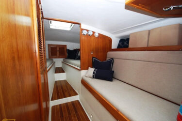 The expansive forward deck provides a relaxed space for sunbathing or simply taking in the breathtaking views of Sydney’s iconic harbour. Inside, the airy saloon offers a comfortable retreat with its day bed and stylish finishes, while the cockpit is designed for seamless outdoor living. With a full alfresco galley kitchen, including a BBQ and sink, you’ll have everything you need to cater for your group in style. Whether you’re lounging in the sun, sipping drinks on the deck, or dining in the open air, Tigeress truly has it all.