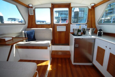 Step aboard MV Maddison and indulge in a luxurious experience on Sydney Harbour. From the moment you enter, you’ll be greeted by a spacious main lounge that comfortably seats up to 10 guests, creating an inviting space to relax and socialize. Just beside it, a stylish dining area with an island bar awaits, where the crew will gladly serve your favorite drinks, making every moment enjoyable.